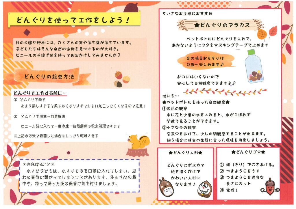 園庭の木の葉も色づき日々秋の深まりを感じられるようになりました。